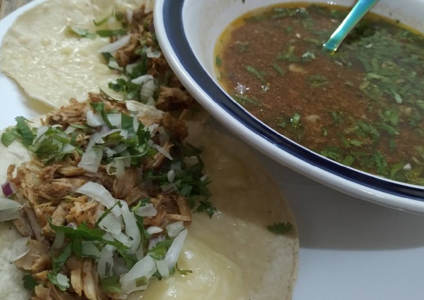 - Dejar la olla unos 40 minutos y pasando el tiempo sacar la carne para desmenuzarla para las quesabirrias, la carne debe estar muy suave, si no esta así volver a tapar la olla unos minutos más y listo, a servir el consomé en plato hondo y hacer las quesabirrias, agregar cilantro y cebolla