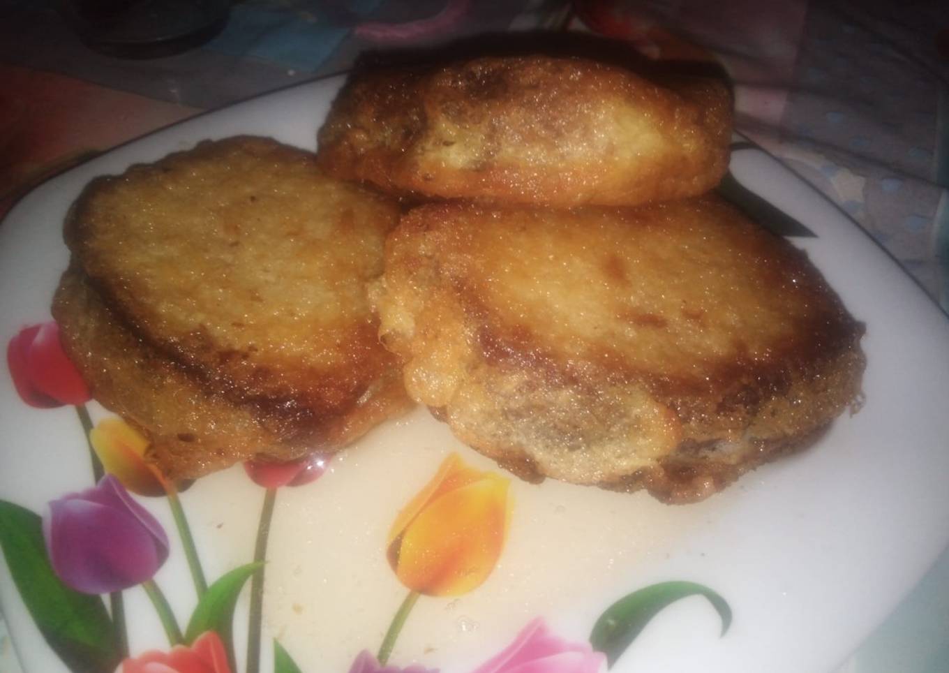 - En un sartén, ponemos a calentar aceite. Ya que esté listo, colocamos nuestro pan con mezcla a freír por ambos lados.