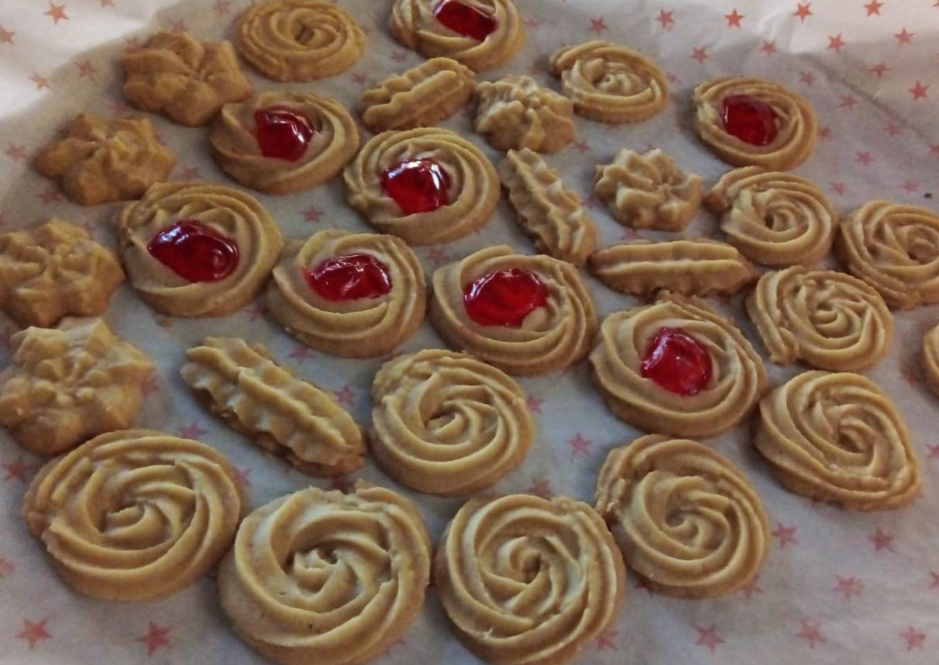 - Colocar la mezcla en una manga con dulla estrella y formar pequeñas galletas sobre una charola con papel estrella.