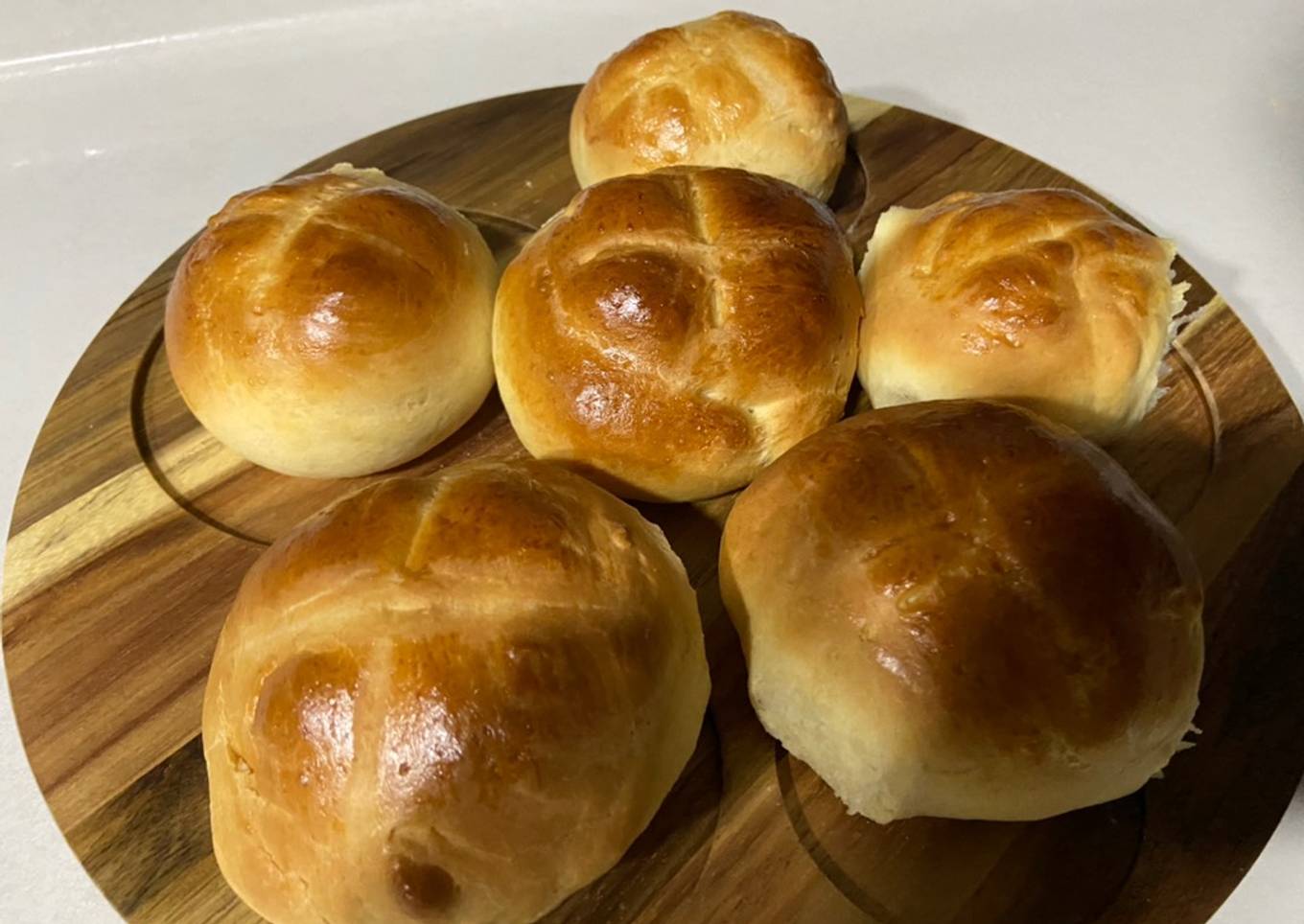 - Agarra porciones de 50 gr y hacer bolitas con una cruz en el centro y barnizadas con huevo