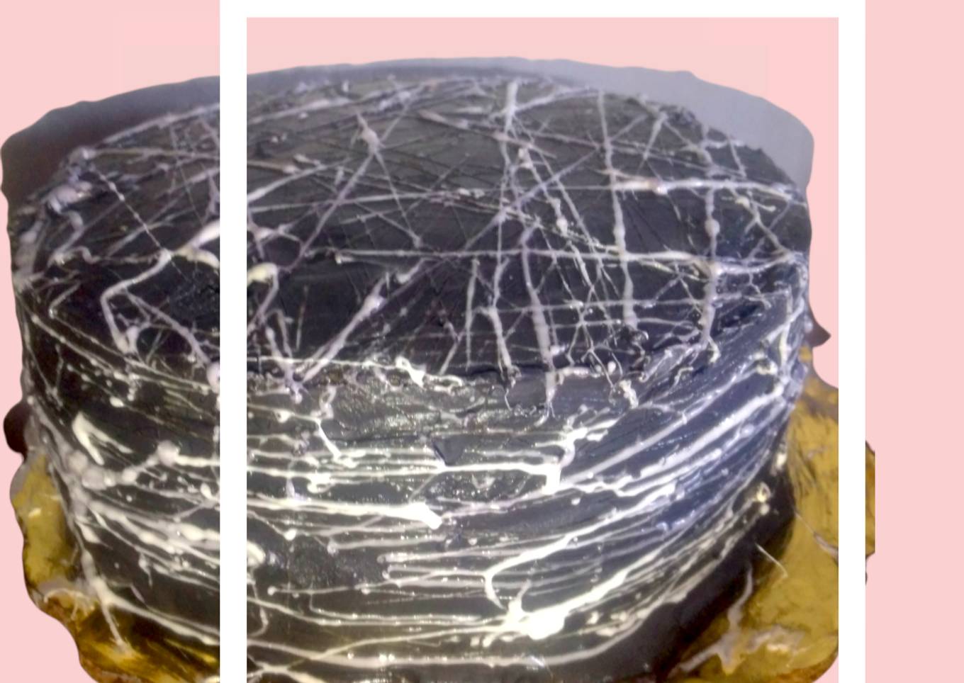 - Después empezaremos cubriendo con la crema sabor nata negro en todo el pastel y decoramos con el bombón derretido en forma de telaraña para esto derretiremos el bombón y nos ponemos manteca vegetal en las manos para que no se nos pegue y listo
