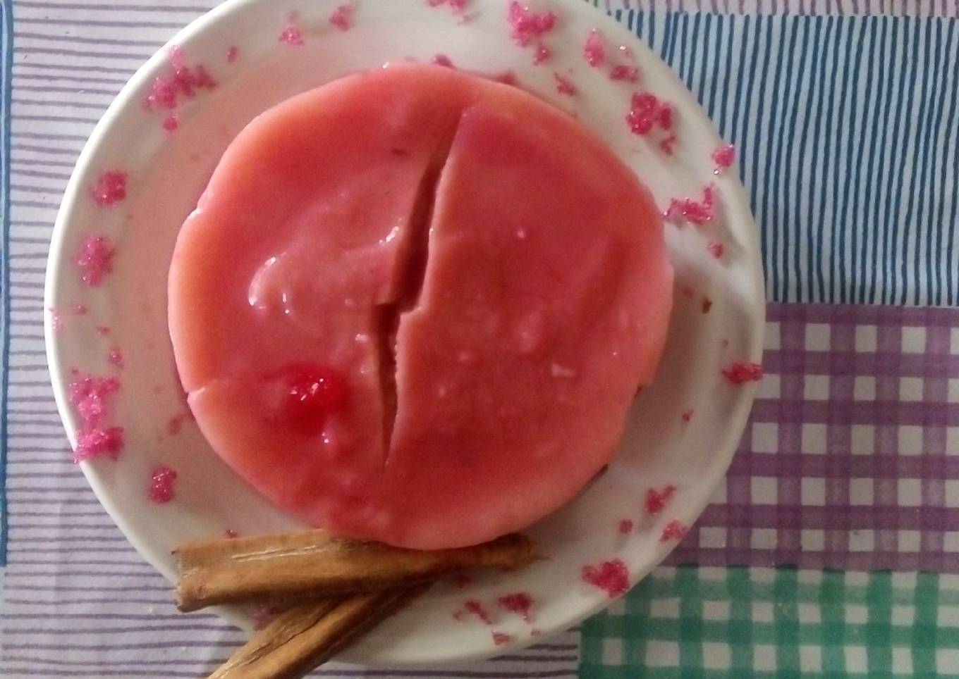 - Lo vertemos en un molde y en un recipiente agregamos un poco de la mezcla y el azúcar roja revolverlo muy bien.