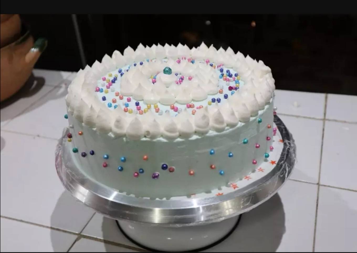- Después lo pondremos en una base y comenzaremos untando la crema previamente batida alineándolo dándole forma y decorándolo al gusto