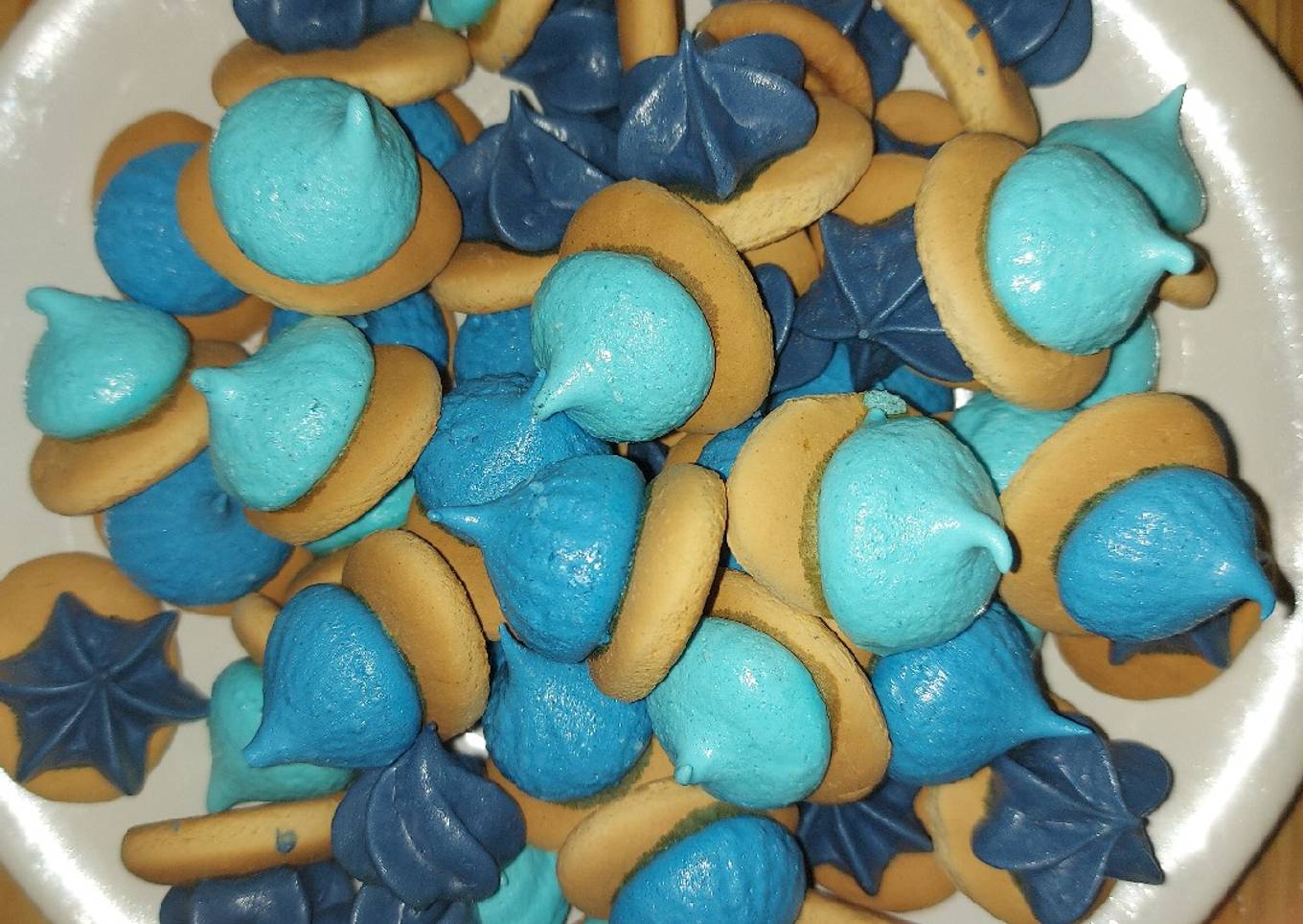 - Pondré unas galletas qué tenía guardadas y les pondré merengue por encima y hornearé por 2 horas a 125°C